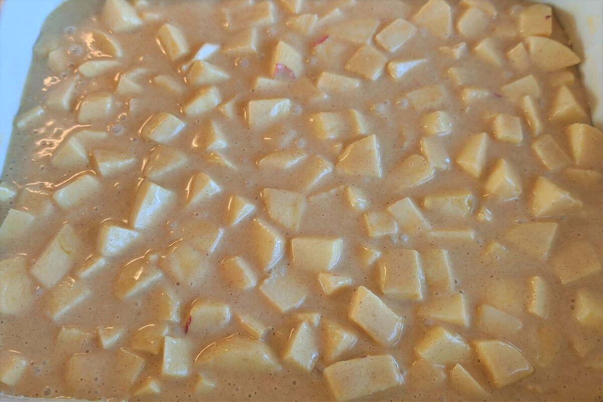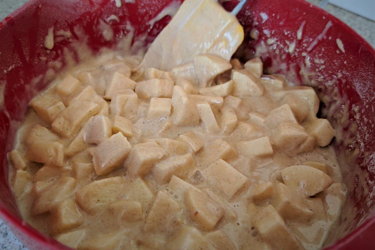Finally add the cubed apples and mix well.