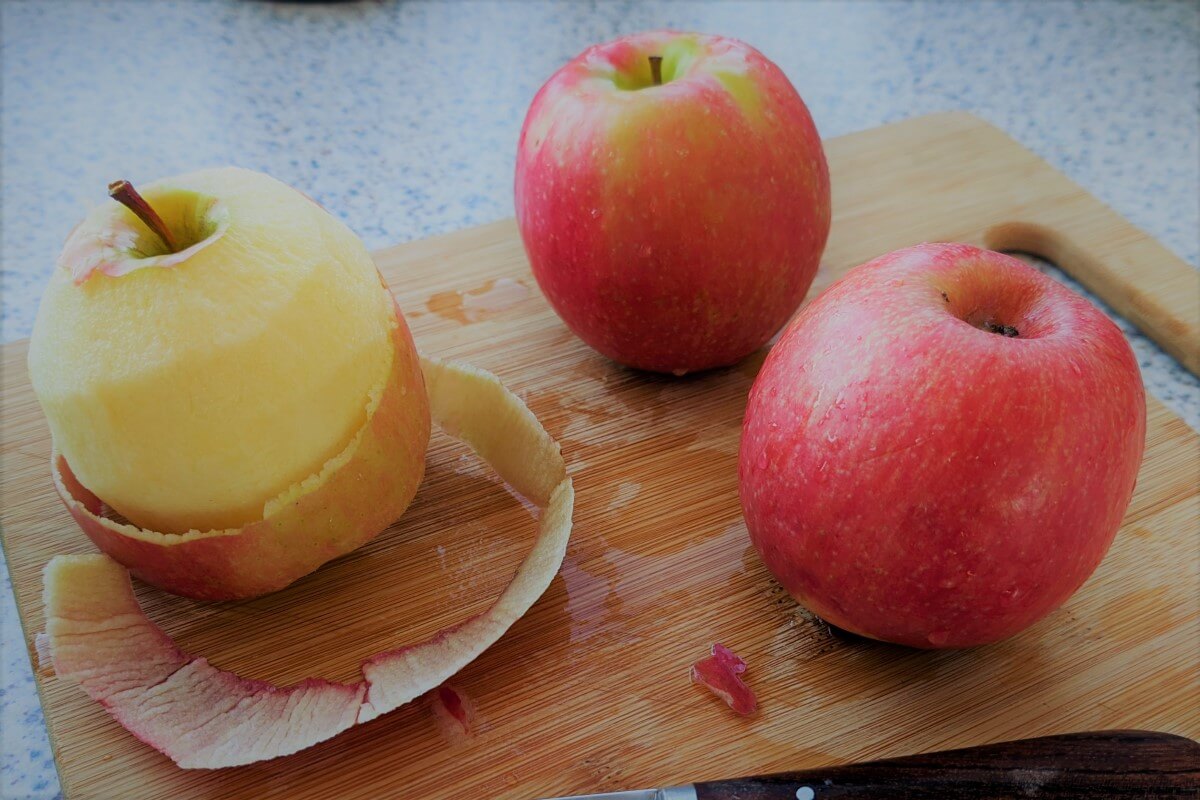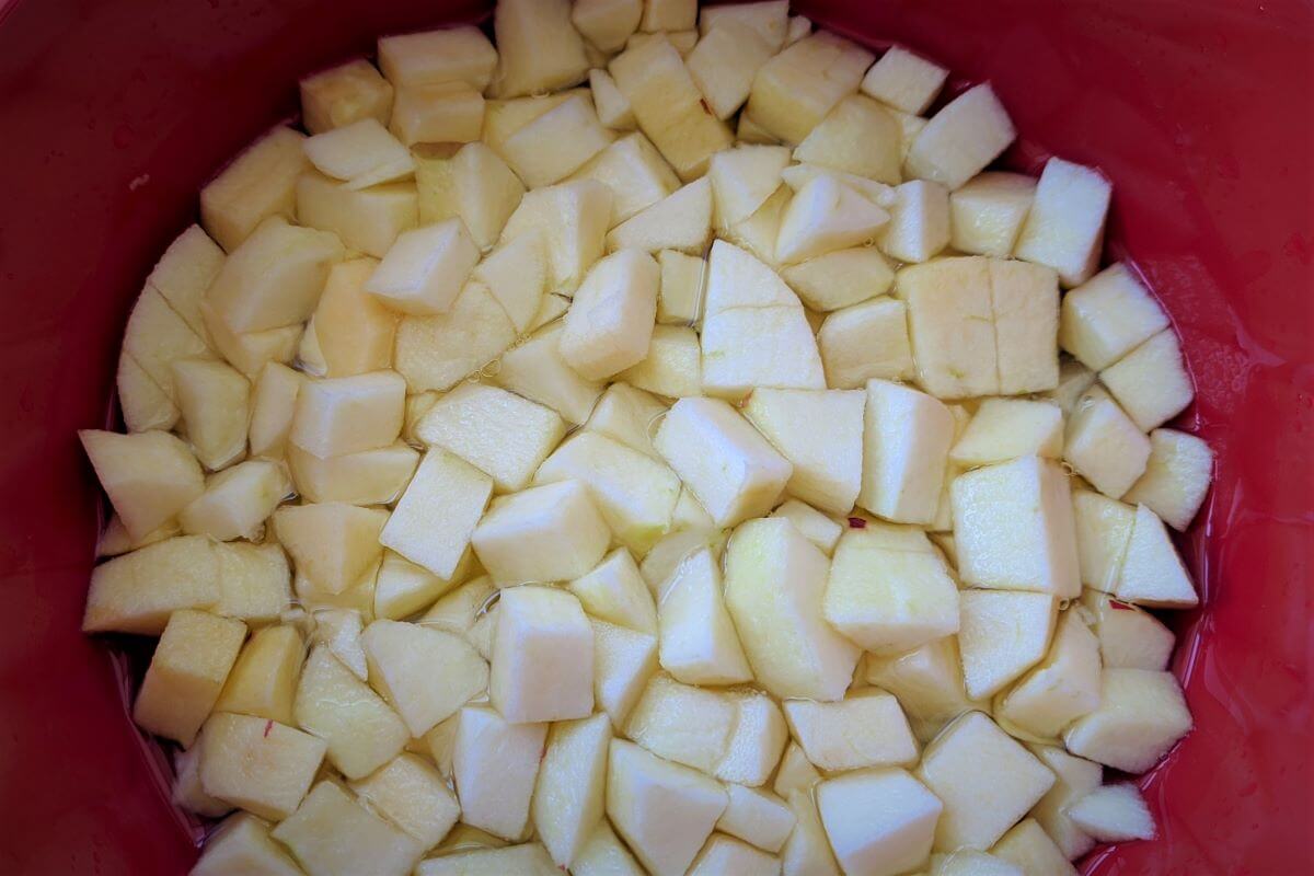Peel off the apples and slice them into cubes.
